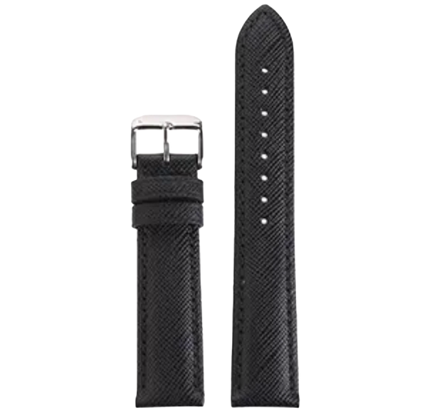 22mm Black Genuine Leather Checkered Cross Pattern Replacement Watch Strap for Fossil, Seiko, Citizen, Casio, etc