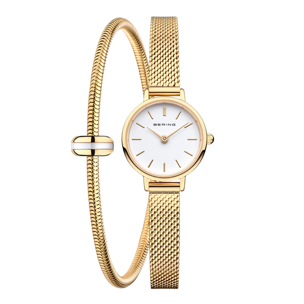 Bering Classic Gift Set (22mm) White Dial / Gold-Tone Stainless Steel Mesh Bracelet 11022-334-LOVELY-1-GWP190 Women’s Watch