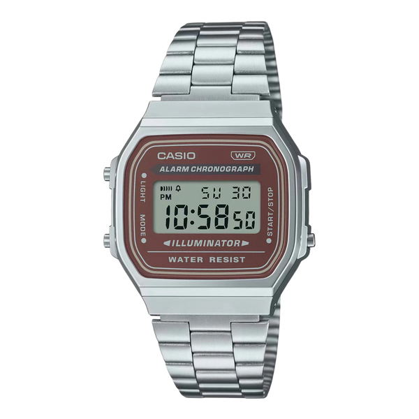 Casio A168WA-5AYES Vintage Digital Illuminator 36mm Brown Digital Dial Stainless Steel Men & Women Watches