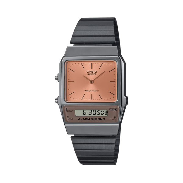 Casio AQ-800ECGG-4AEF Dual Time Display Vintage Orange Dial Black IP Stainless Steel Bracelet Men’s & Women’s Watch