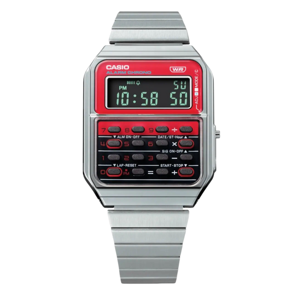 Casio Vintage Calculator Red / CA-500WE-4B Stainless Steel Bracelet Men's Watch