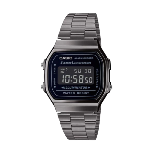 Casio A168WGG-1BDF Vintage Silver Stainless Steel Bracelet Black Dial Gun Metal Men's Watch