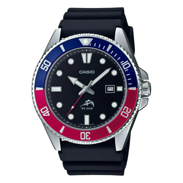 Casio Duro Marlin Diver MDV-106B-1A2 ‘Pepsi Bezel’ Rubber Strap Black Dial Men's Watch