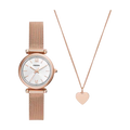 Fossil Carlie Rose Gold Tone Stainless Steel Silver Dial Quartz ES5314SET Women's Watch With Gift Set