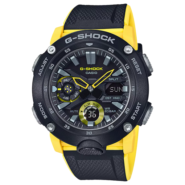 Casio G-Shock GA-2000-1A9ER Carbon Core Guard Black Yellow Rubber Strap Men's Watch