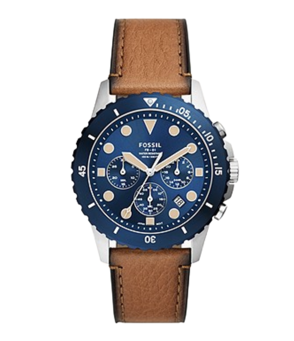 Fossil FS5914 Blue Dial Brown Chronograph Eco Leather Strap Men’s Watch