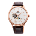 Orient Bambino RA-AS0102S10B Sun & Moonphase Open Heart Mechanical Ivory Dial / Brown Leather Men's Watch