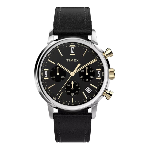 Timex Marlin TW2W51500 Quartz Chronograph (40mm) Grey Sunray Dial / Caramel Black Leather Strap Men’s Watch