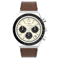 Timex Q Timex TW2V42800 Chronograph (40mm) ‘Panda’ Cream Dial / Brown Leather Strap Men's Watch