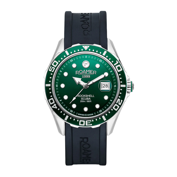Roamer Rockshell MKIII 867833 41 75 02 Scuba Green Dial / Black Silicone Strap Men's Watch