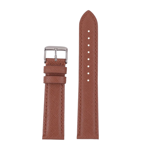 22mm Brown Genuine Leather Checkered Cross Pattern Replacement Watch Strap for Seiko, Citizen, Casio, etc
