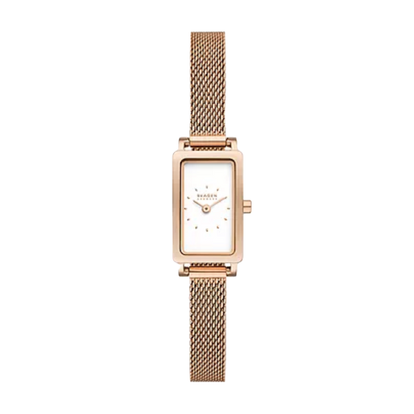 Skagen SKW3148 Hagen Micro (30mm) White Rectangular Dial / Rose Gold-Tone Stainless Steel Mesh Bracelet Women's Watch