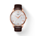 Tissot T0636103603800 Tradition Rose Gold Plated Silver Dial Brown Leather Strap Men's Watch